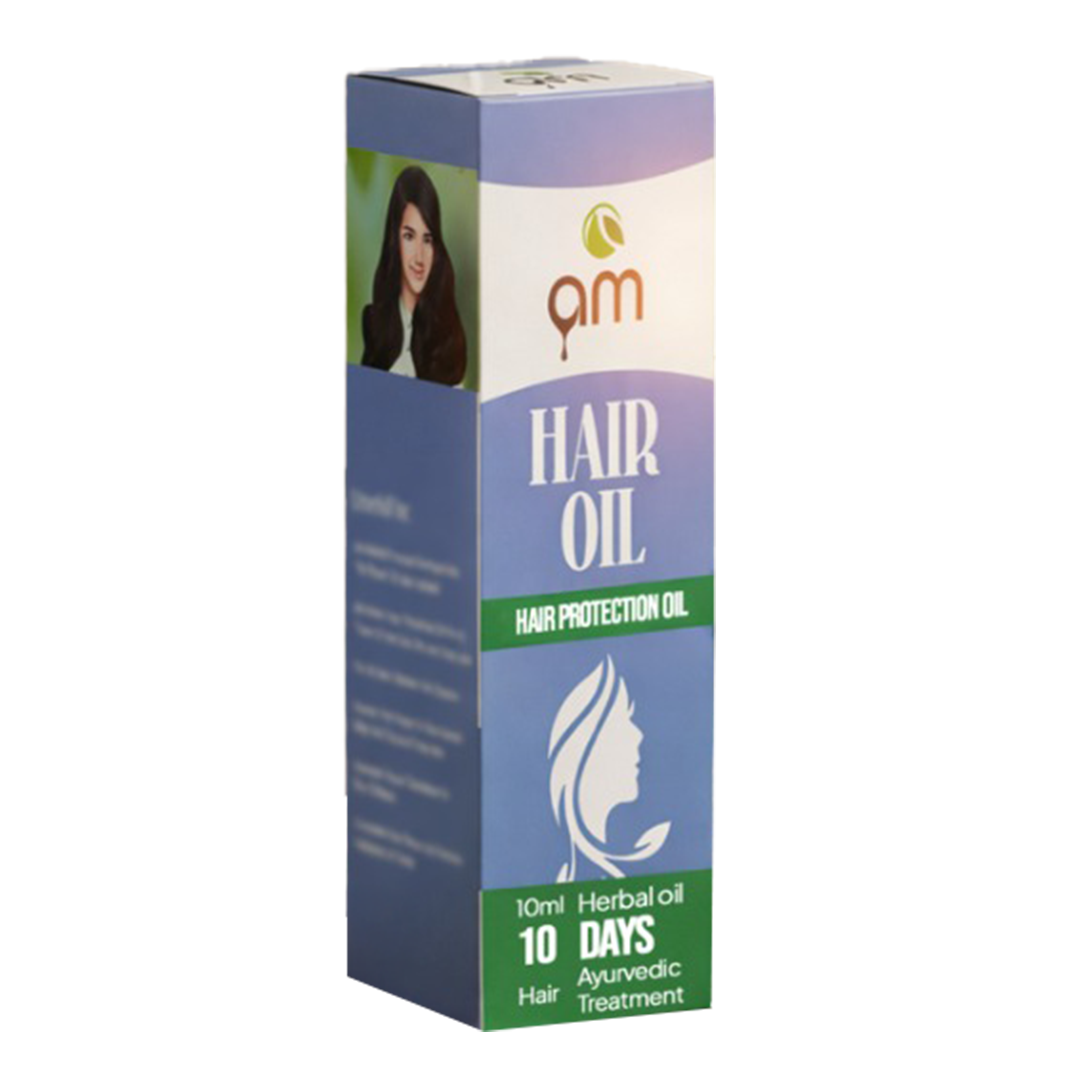 Am Hair oil is a natural herbal blend that nourishes the scalp ,reduces dandruff ,strenthens hair roots ,and promotes healthy ,silky hair growth